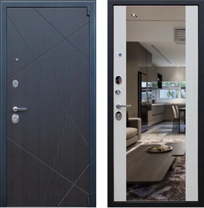 Надежная входная Дверь Вектор с зеркалом премиум класса по цене 48 633 руб. Большая толщина стали защитит от проникновения в ваш дом, квартиру или коттедж. Используется очень качественная фурнитура: замки, цилиндры, ручки, защелки. Покрытие и отделка двери изготовлено под внимательным контролем производителя. Дверь имеет долгий срок службы и гарантию.